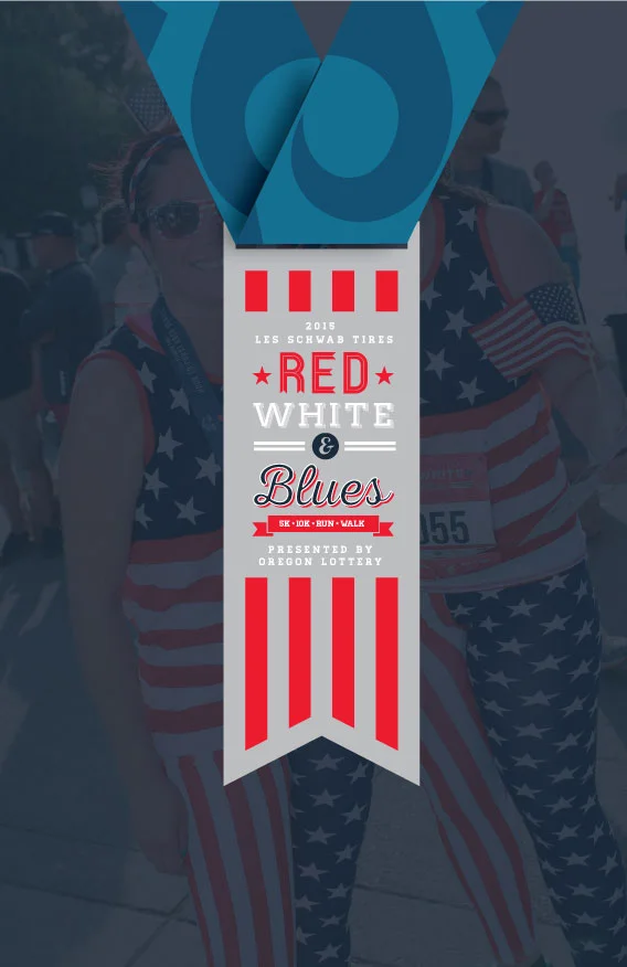 Red, White, & Blues is a 5k, 10K, and half marathon road race in West Linn Oregon. For the past three years, I have designed the event's participant shirts, finisher medals, race bibs, signage, and digital marketing materials.